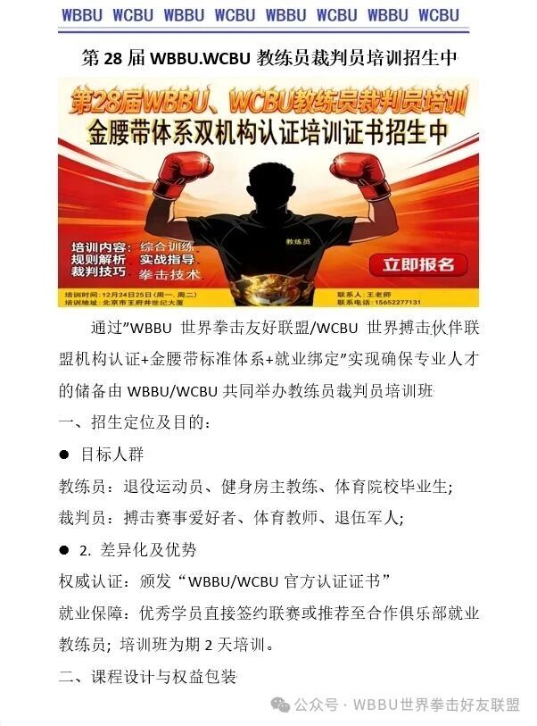 2025年第28届WBBU&WCBU教练员、裁判员培训招生